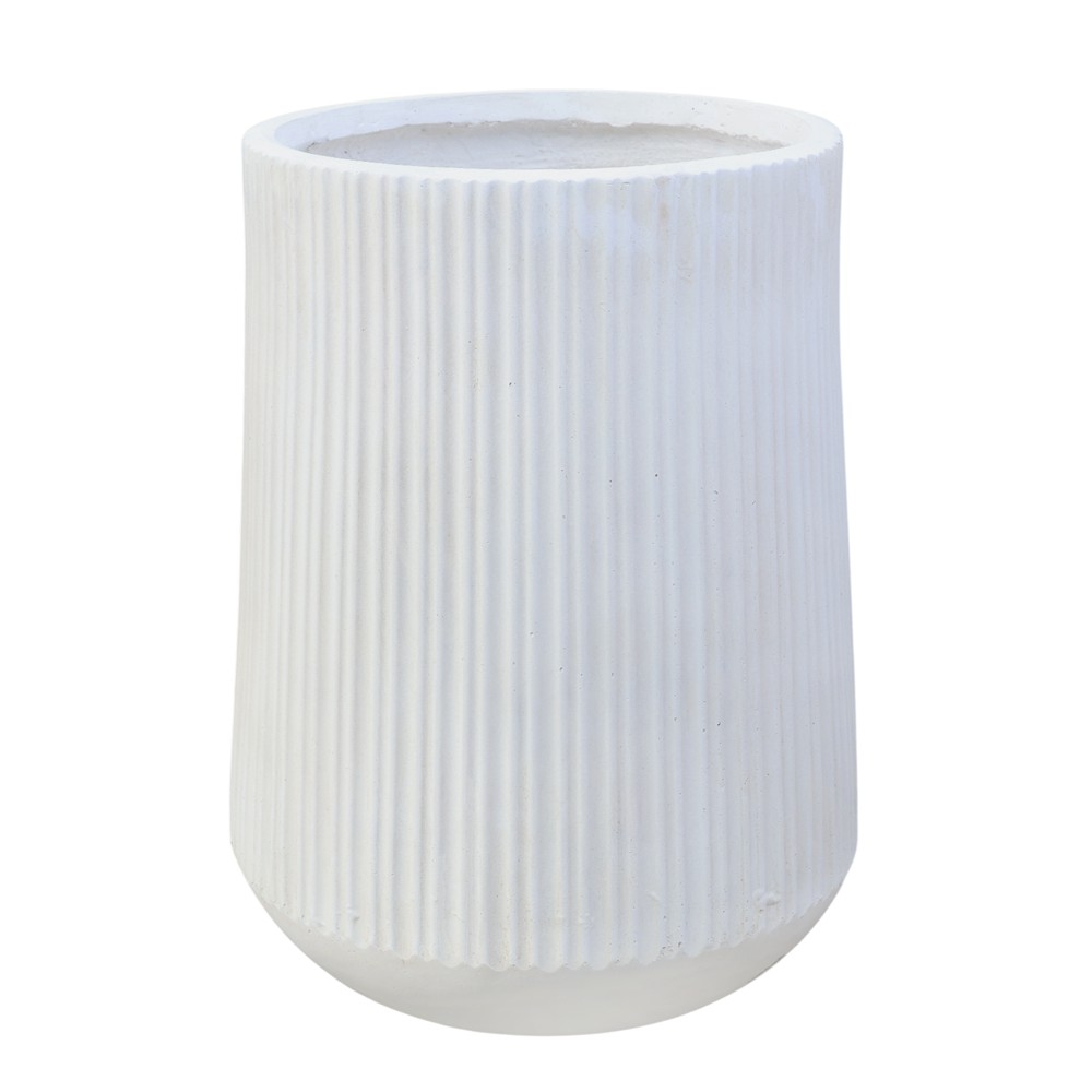 Kjo vazo lulesh në përmasa mesatare, e punuar nga argjilë e përzgjedhur dhe e veshur me një nuancë të bardhë të butë, që i jep hapësirës ndjesi pastërtie dhe qetësie. Me dimensione 37x37 cm dhe lartësi 47 cm, kjo vazo krijon një prani elegante duke qenë dominuese. Linjat e saj të pastra dhe forma e ekuilibruar e bëjnë perfekte për të ekspozuar bukurinë natyrore të bimëve, duke e shndërruar çdo kënd në një pikë stili dhe harmonie. Ideale për ambiente moderne, minimaliste apo klasike, ku detajet flasin vetë. Falë peshës së lehtë, materialit rezistent, dhe pamjes elegante, kjo vazo është ideale për ambientin tuaj, duke i dhuruar hapësirës tuaj, një prekje të rafinuar. Kjo vazo do të jetë jetëgjatë dhe do të duket perfekte me stile të ndryshme të kompozimeve tuaja.