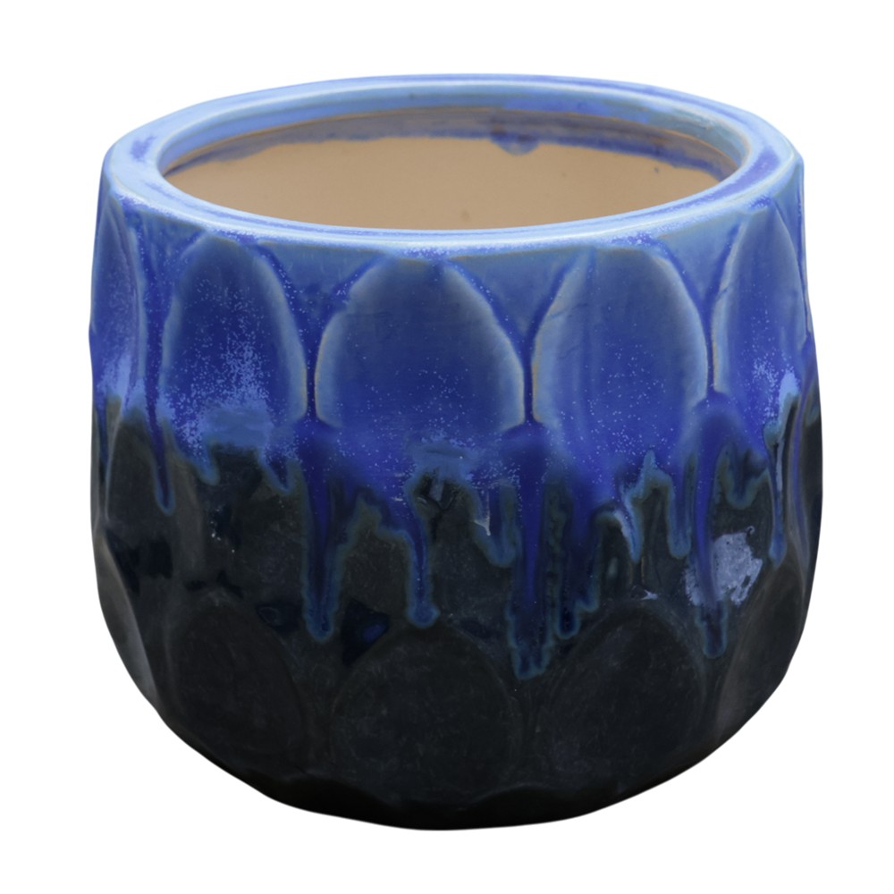Vazo lulesh, M, qeramike, e zezë/blu, Ø22xH18 cm