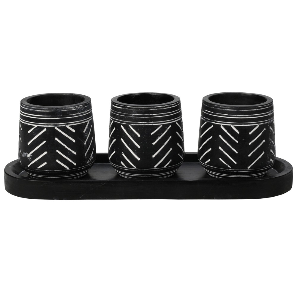 Vazo lulesh me tabaka, çimento, e bardhë/e zezë, vazo: 8x8xH8 cm, tabaka: 30x10xH2 cm