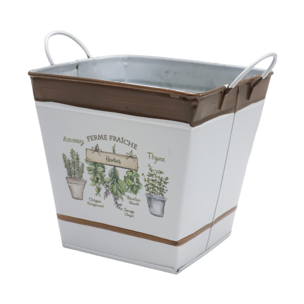 Vazo lulesh, metalike, e bardhë/kafe, 13x13x14 cm