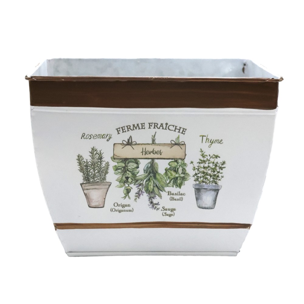 Vazo lulesh, metalike, e bardhë/kafe, 18.5x18.5x15 cm