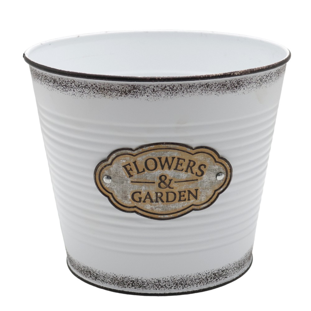 Vazo lulesh, metalike, e bardhë/kafe, 20x17 cm