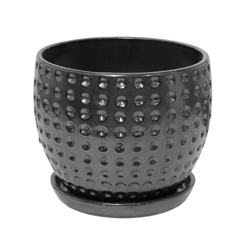 Flower pot, ceramic, silver, 24x24x20.5 cm