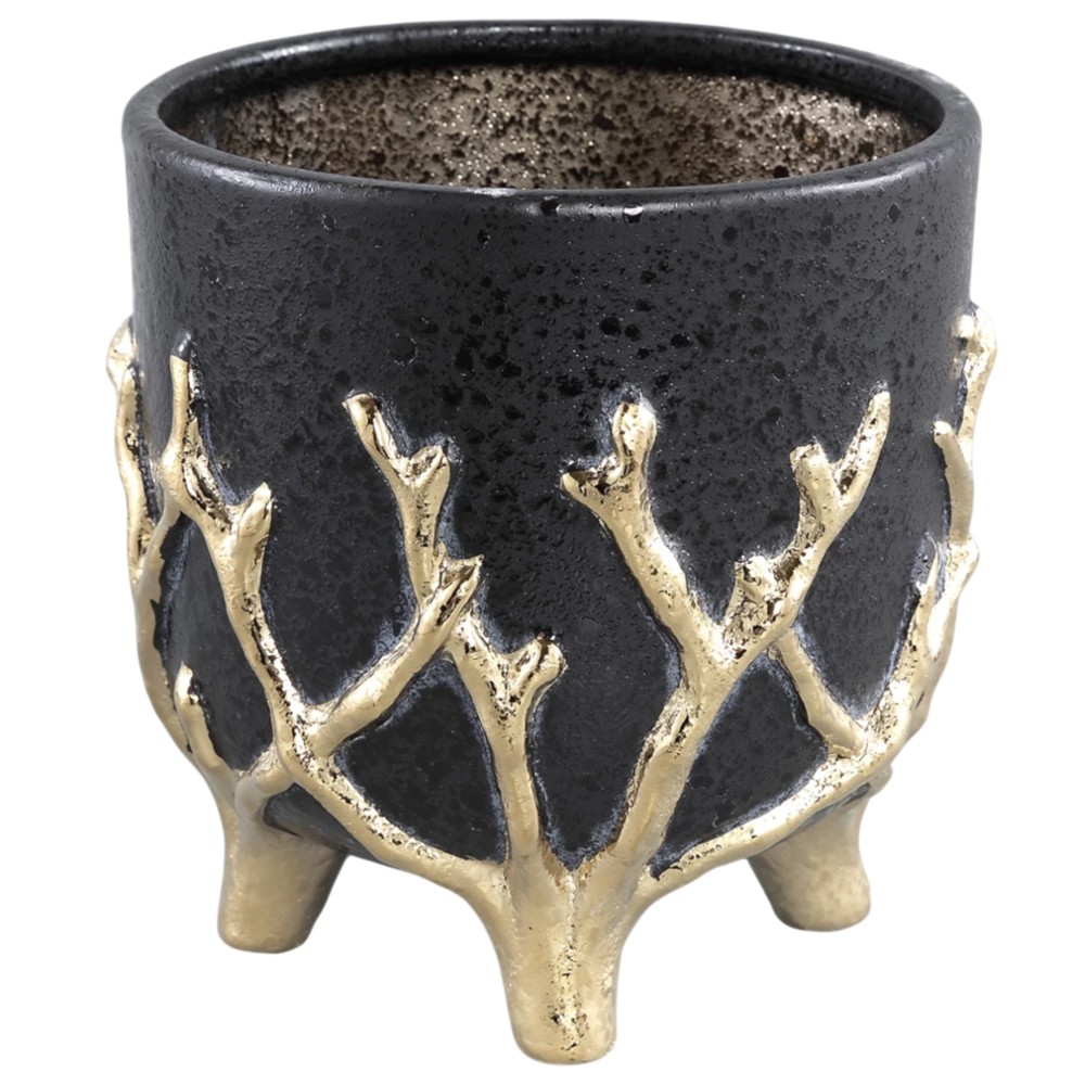 Po vlerësoni:Vazo lulesh, qeramike, e zezë/floriri, 17x17xH17 cm
