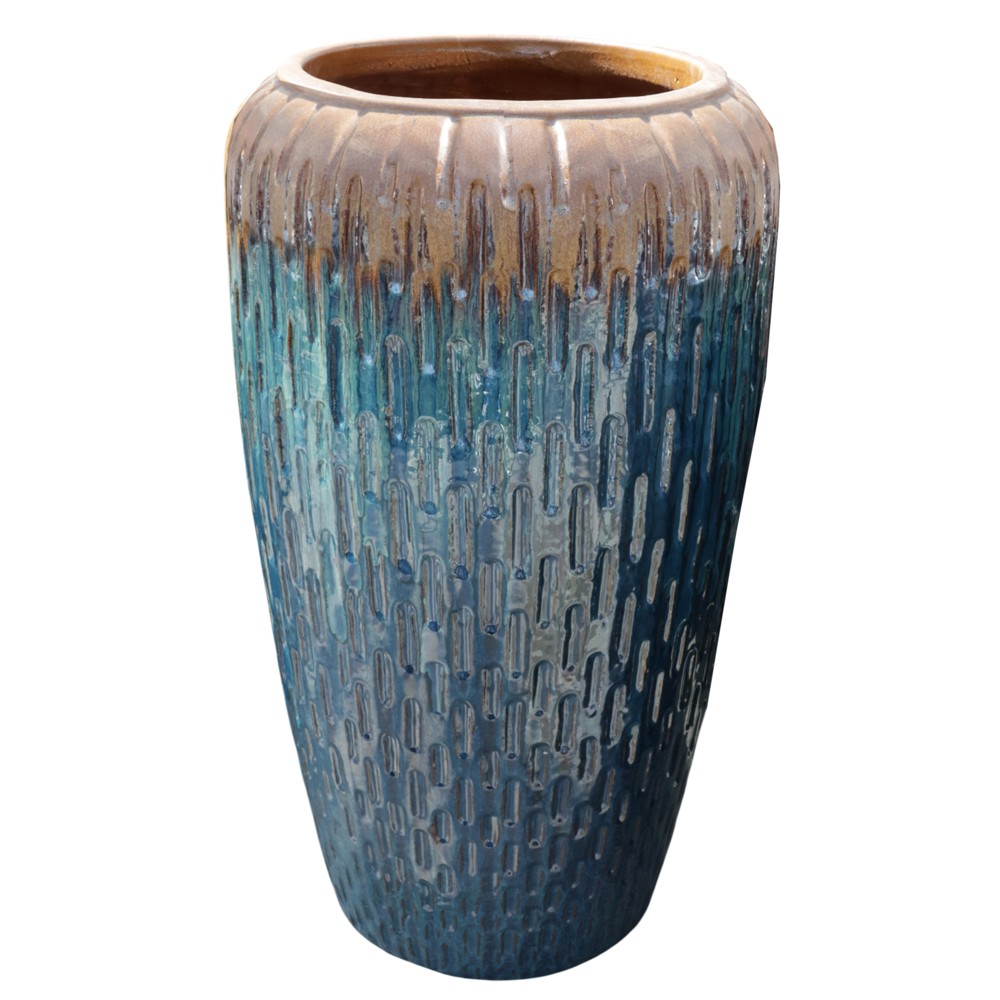 Vazoja e lules në material qeramike dhe në forma të bukura të punuara me dorë. Linjat impresive e bëjnë këtë vazo një dhuratë të mrekullueshme për të apasionuarit pas kopshtit. Vazoja e lules do të përmirësojë dhe zbukurojë dekorin e kopshtit tuaj. Detajet dhe stili i kësaj vazoje dhuron një vështrim të paarritshëm në projektin tuaj.