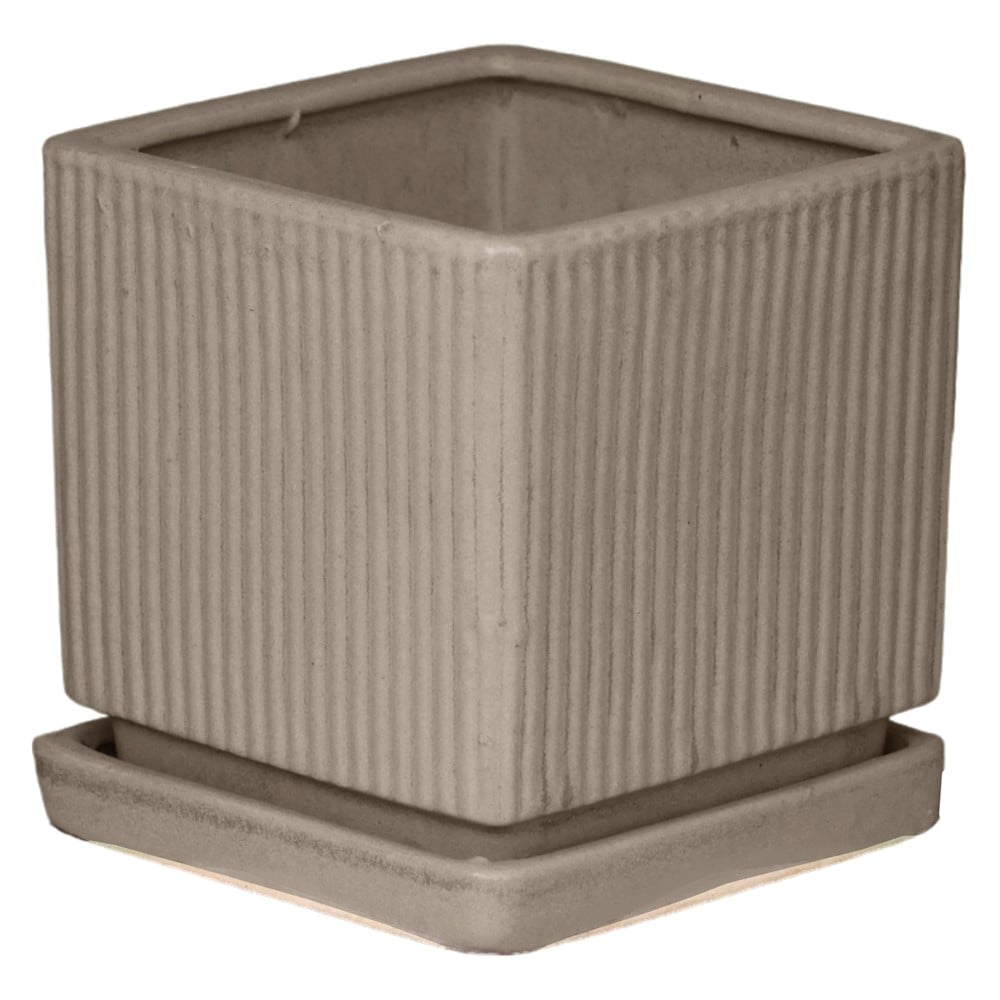 Vazo lulesh, qeramike, kafe, 17.5x17.5x18 cm