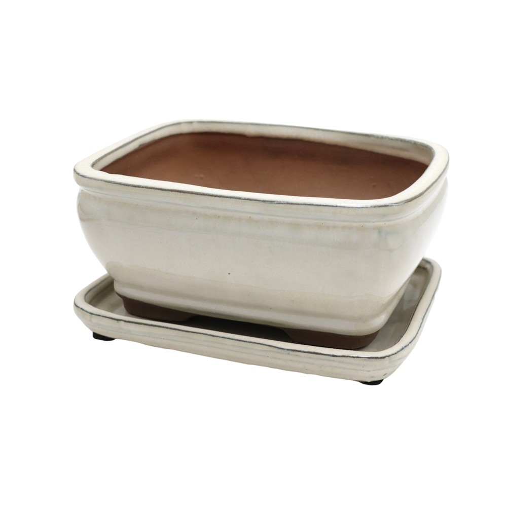 Vazo lulesh, qeramike, krem, 15.5x12.5x7.9 cm