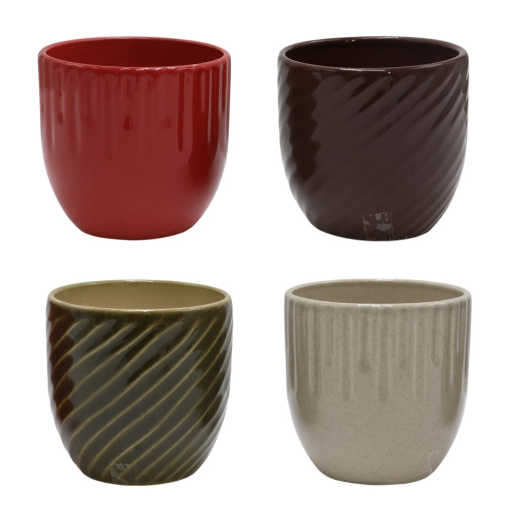 Këto vazo qeramike dekorative sjellin finesë dhe ngrohtësi në çdo hapësirë. Me përmasa Dia.8xH8 cm, ato janë perfekte për lule të vogla, bimë sukulente apo dekorime natyrale që gjallërojnë çdo cep të shtëpisë. Çdo vazo ka dizajn dhe ngjyrë të ndryshme, duke ofruar një kombinim unik që pasuron çdo ambient me karakter dhe stil. Punimi prej qeramike i jep atyre një ndjesi cilësie dhe elegance, ndërsa format e tyre të buta dhe delikate krijojnë një atmosferë të qetë e të këndshme. Ideale për tryeza, rafte apo dhurata plot shije – një detaj i vogël që sjell shumë bukuri.