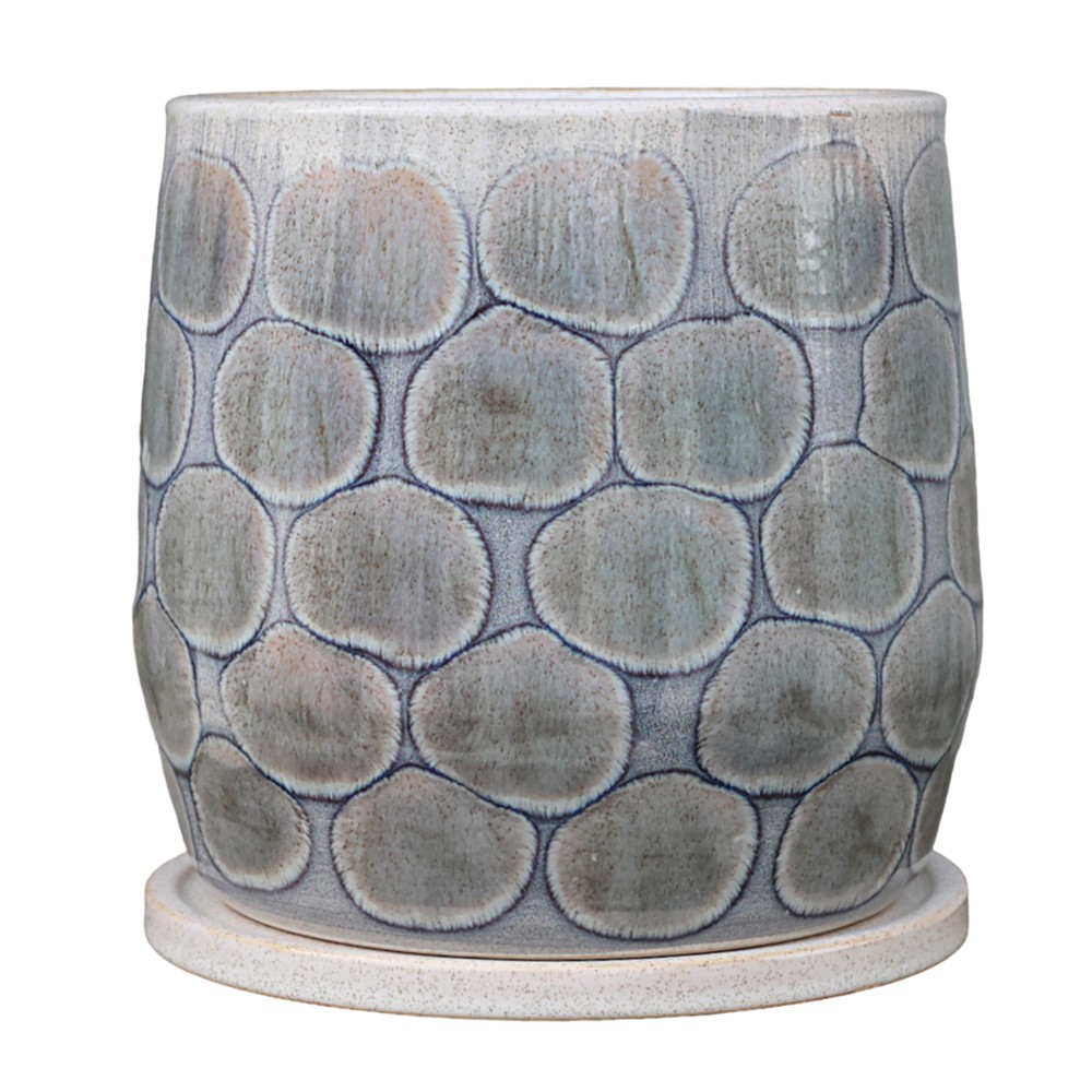 Vazo lulesh "Rosali" është një element dekorativ krijuar nga qeramika, me një ngjyrë blu tërheqëse. Me dimensione Ø22.5xH22 cm, kjo vazo ofron një zgjedhje elegante për shfaqjen e luleve dhe bimëve të tjera dekorative në ambiente të ndryshme. Ngjyra blu dhe materiali i qeramikës e bëjnë atë një shtesë tërheqëse për çdo dekor, duke sjellë një atmosferë të ngrohtë dhe estetike.