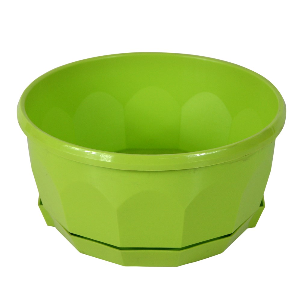 Vazo lulesh rrethore, FIORELLA, plastike, jeshile, Ø25 xH11.5 cm