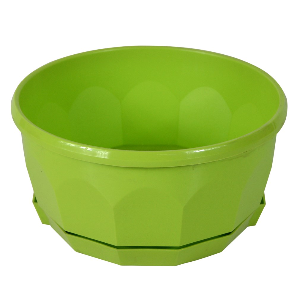 Vazo lulesh rrethore, FIORELLA, plastike, jeshile, Ø30 xH13 cm