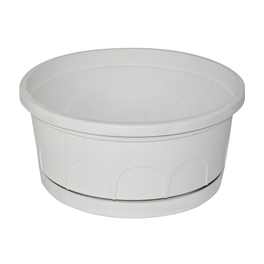Vazo lulesh rrethore, LEADER, plastike, e bardhë, Ø20 xH10 cm