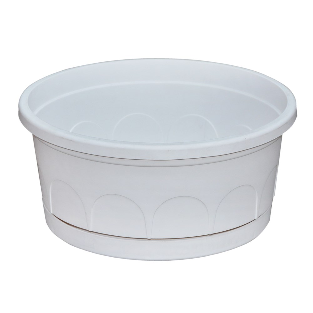 Vazo lulesh rrethore, LEADER, plastike, e bardhë, Ø25 xH12 cm
