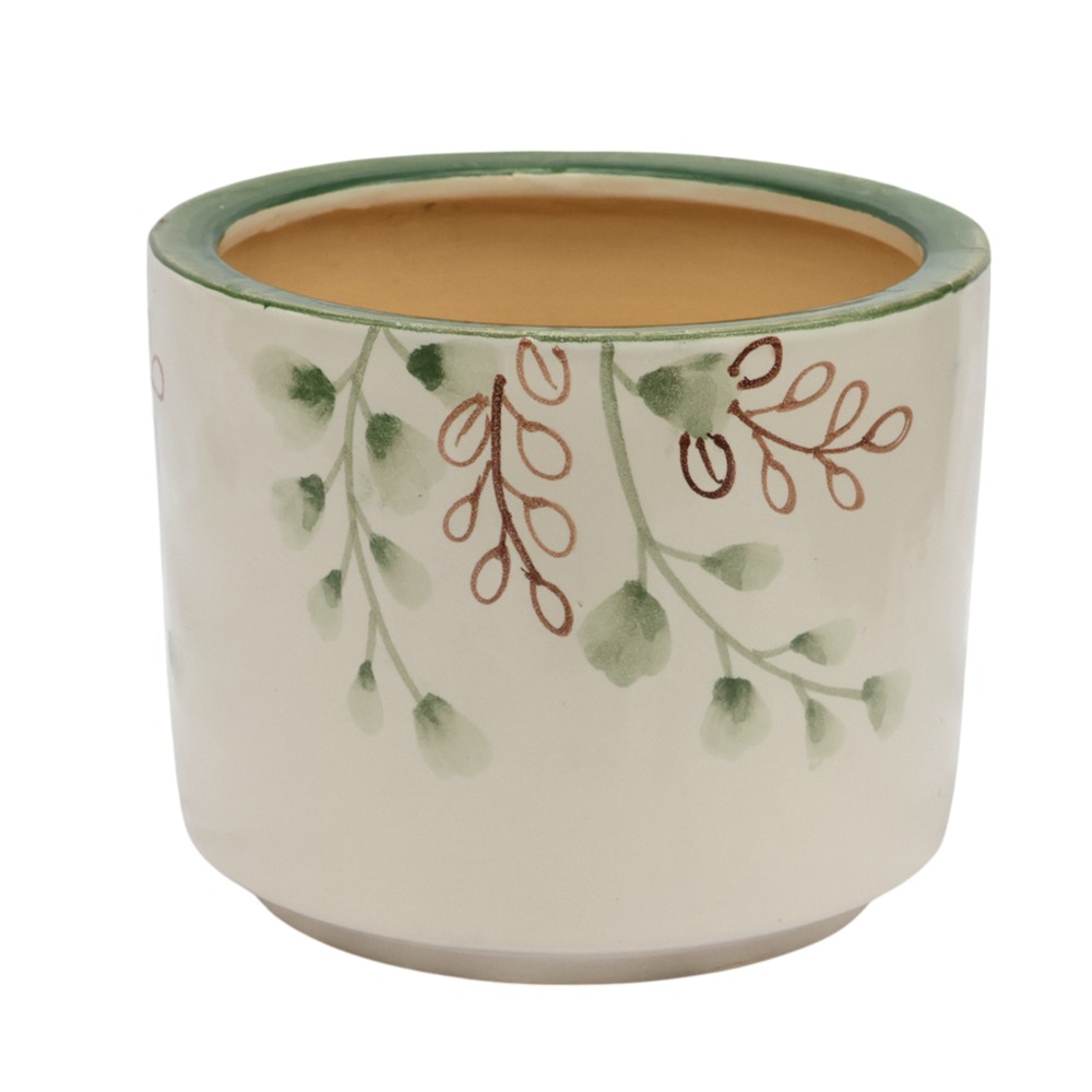 Vazo lulesh, S, qeramike, e bardhë/jeshile, Ø21xH18 cm