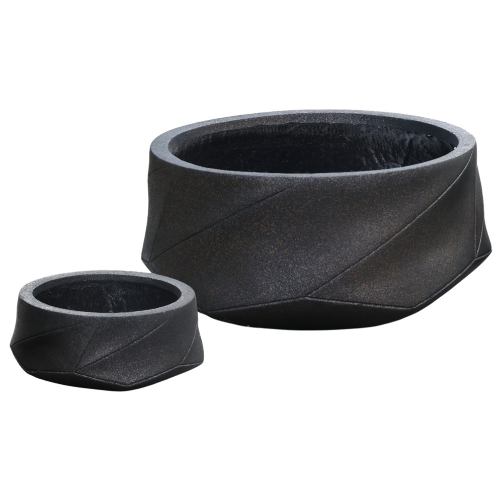 Ky set elegant me dy vazo lulesh prej argjile sjell ngrohtësi dhe stil në çdo ambient. Ngjyra bakri me efekt metalik krijon një pamje luksoze dhe moderne, duke i dhënë hapësirës një karakter të veçantë dekorativ. Seti përfshin dy madhësi të ndryshme, (31x31xH13 cm) dhe (52.5x52.5xH23 cm), të cilat kombinohen në mënyrë harmonike për të krijuar kompozime vizuale të bukura me lule ose bimë dekorative. Të përshtatshme si për ambiente të brendshme ashtu edhe të jashtme, këto vazo janë rezistente, funksionale dhe ideale për ata që kërkojnë një dekor unik dhe elegant. Ngjyra e saj unike e kombinuar me materialin superior janë dy pikat kryesore që e bëjnë këte set një përzgjedhje perfekte për ju. Format me relieve të lehta, janë një detaj minimalist por edhe unik që do të nxjerrë në pah edhe më shumë bukurinë e luleve tuaja.
