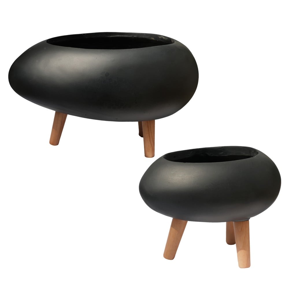 Vazo lulesh, set 2 copë, fibër xhami/argjilë, e zezë, 30x22x25 cm; 50x35x31 cm