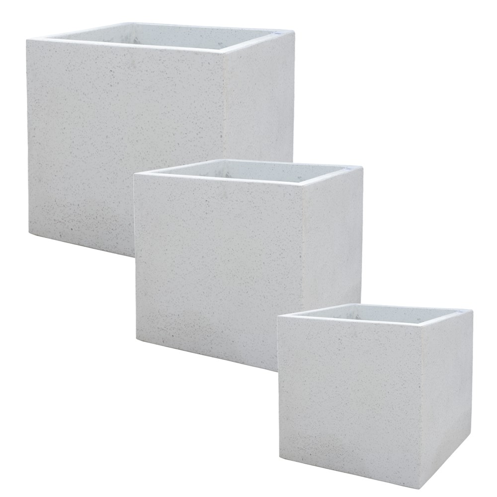 Vazo lulesh, set 3 copë, beton, e bardhë, 60x60xH60cm;50x50xH50cm;40x40xH40cm