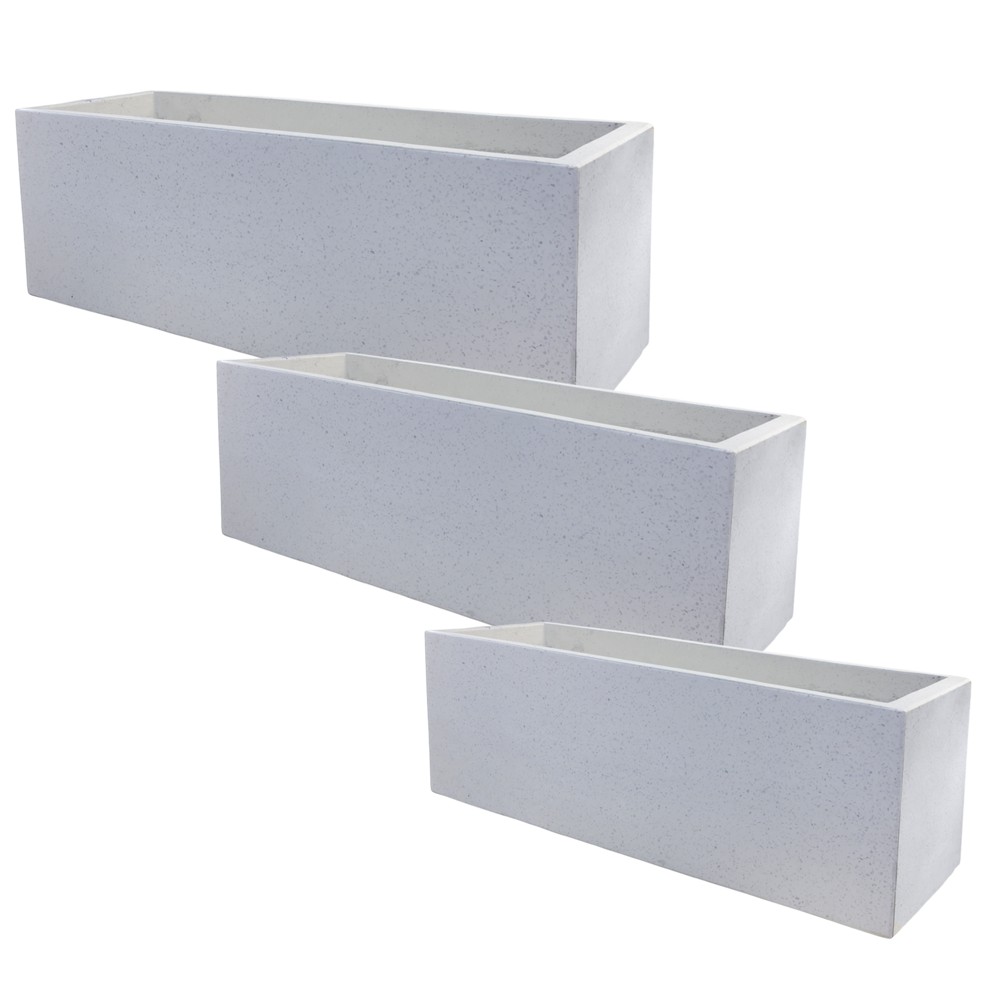 Vazo lulesh, set 3 copë, beton, e bardhë, S: 60x20xH20cm; M: 80x30xH30cm, L: 100x40x40cm