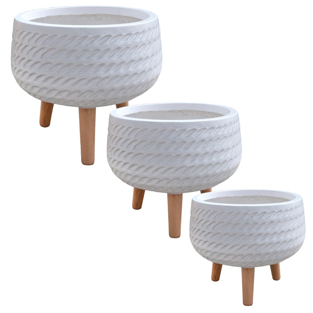 Vazo lulesh, set 3 copë, fibër xhami/argjilë, e bardhë, 24x24x23 cm; 32x32x28 cm; 42x42x32 cm