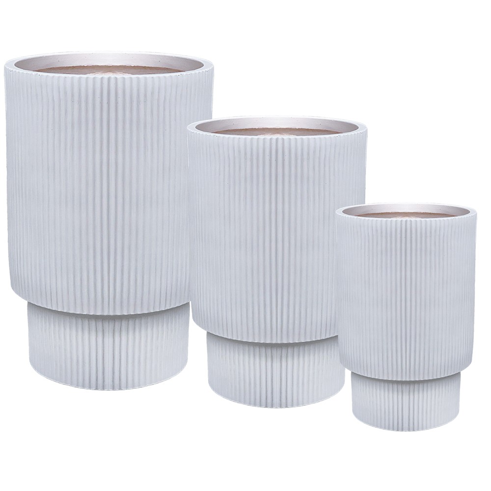 Vazo lulesh, set 3 copë, fibër xhami/argjilë, e bardhë, 24x24x36 cm; 30x30x47 cm; 37x37x55 cm