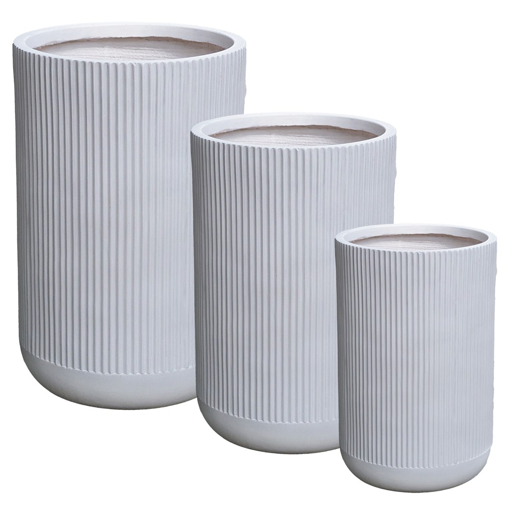 Vazo lulesh, set 3 copë, fibër xhami/argjilë, e bardhë, 24x24x37 cm; 30x30x47 cm; 37x37x55 cm