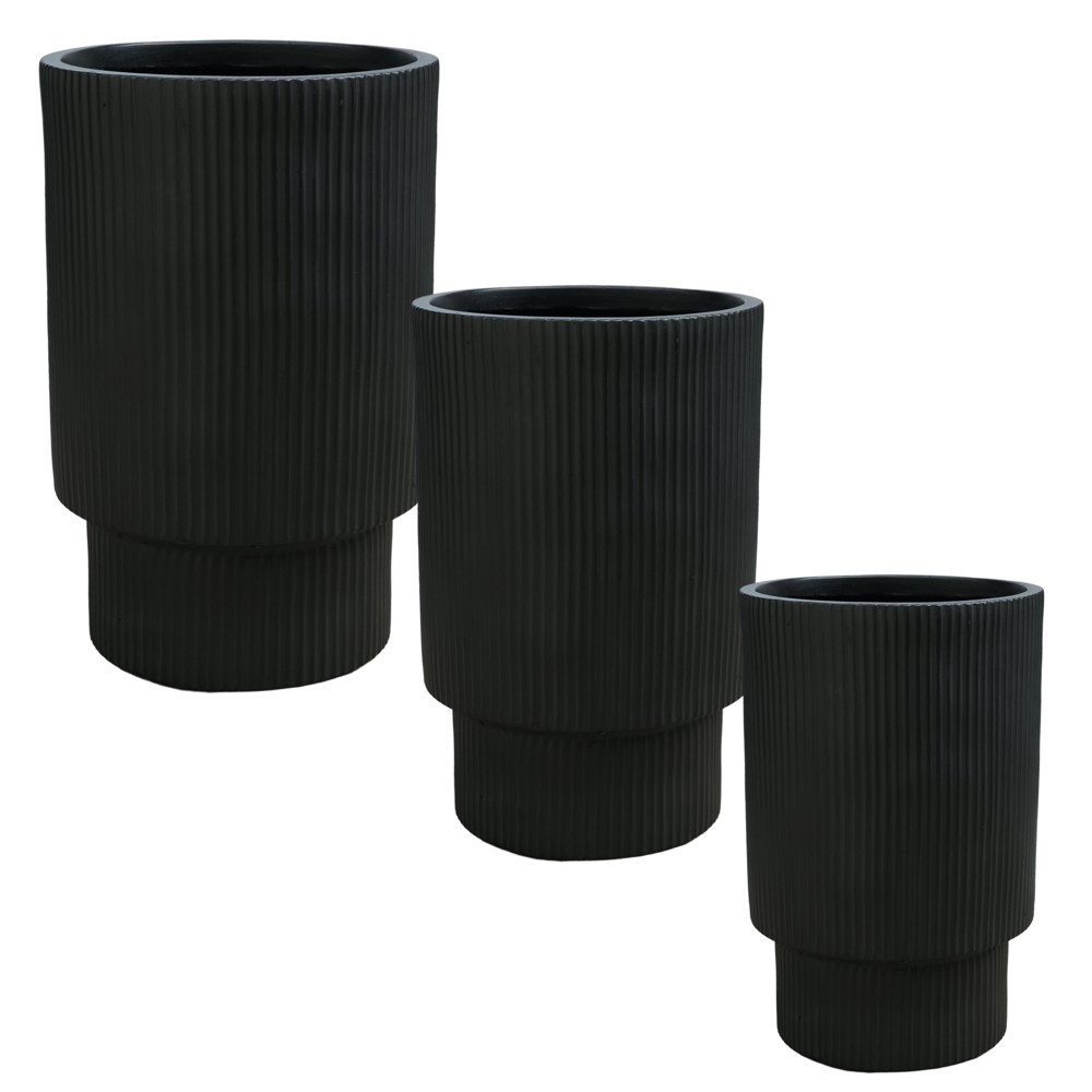 Vazo lulesh, set 3 copë, fibër xhami/argjilë, e zezë, 24x24x36 cm; 30x30x47 cm; 37x37x55 cm