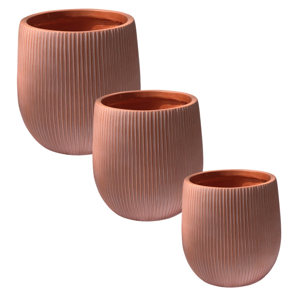 Ky set i përbërë nga tre vazo lulesh është një pjesë e mrekullueshme e dekorit që do të shtojë një ndjesi të modernitetit dhe elegancës në çdo ambient. Krijimi nga fibra xhami/argjilë e jep atij një prekje të sofistikuar dhe të butë, ndërsa ngjyra terrakotë e bën atë të dalë në pah dhe të jetë e përputhur lehtësisht me stilin tuaj të dekorimit. Me dimensione të ndryshme dhe një dizajn modern, ky set do të shtojë një notë të veçantë estetike në ambientin tuaj.