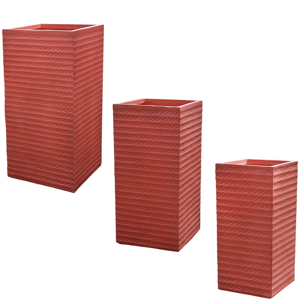 Vazo lulesh, set 3 copë, fibër xhami/argjilë, terrakotë, 24x24x51.5 cm; 30x30x63.5 cm; 37x37x77.5 cm