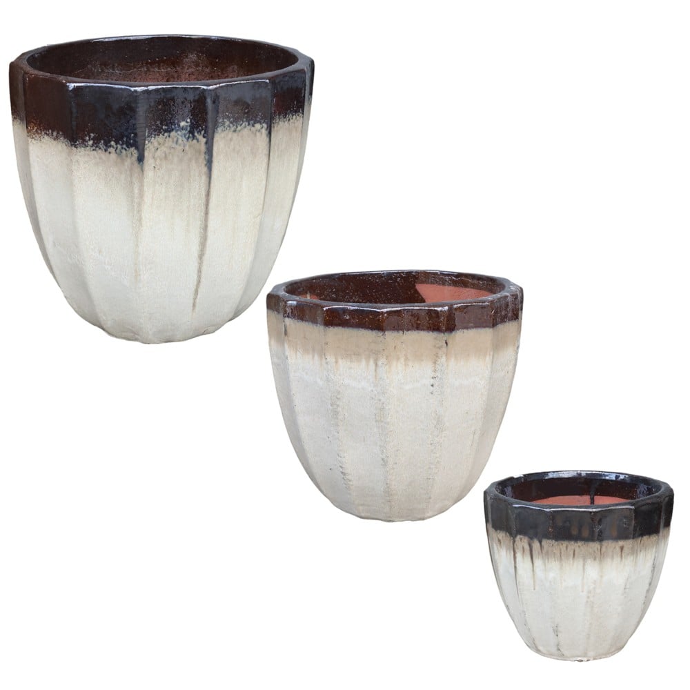 Vazo lulesh, set 3 copë, Maya, terrakotë, e bardhë/e zezë,S-21x21xH19; M- 29x29xH26; L- 36x36xH34 cm