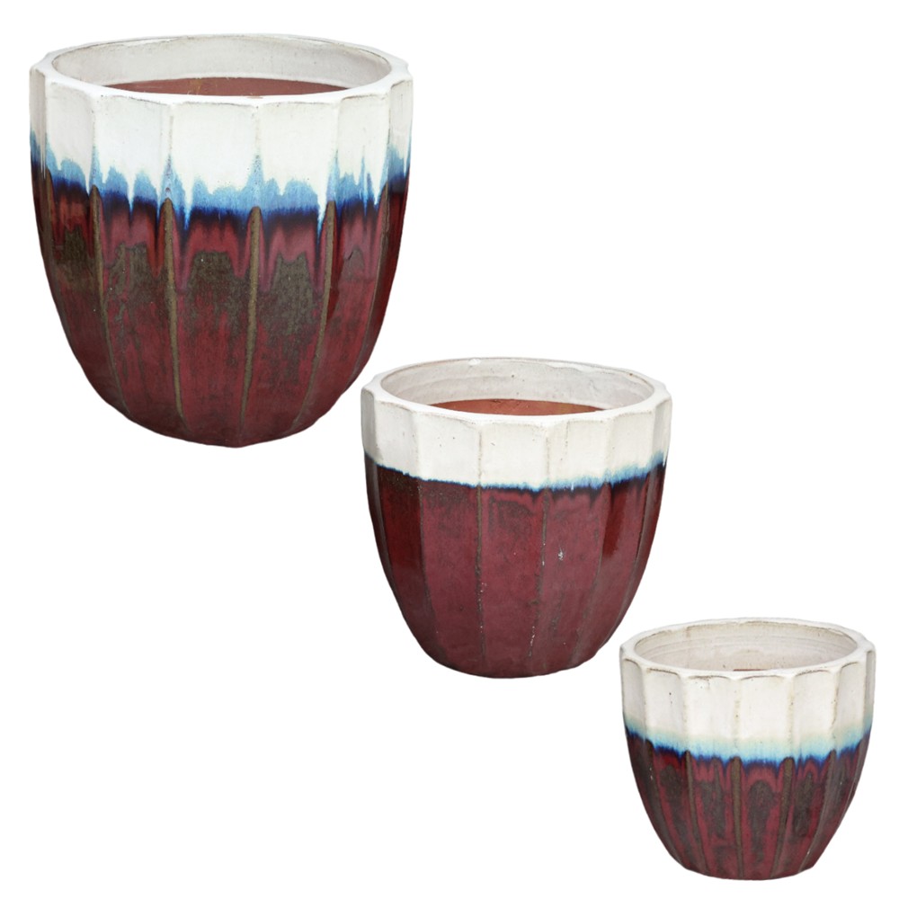 Po vlerësoni:Vazo lulesh, set 3 copë, Maya, terrakotë, kafe/e bardhë,S-21x21xH19; M- 29x29xH26; L- 36x36xH34 cm