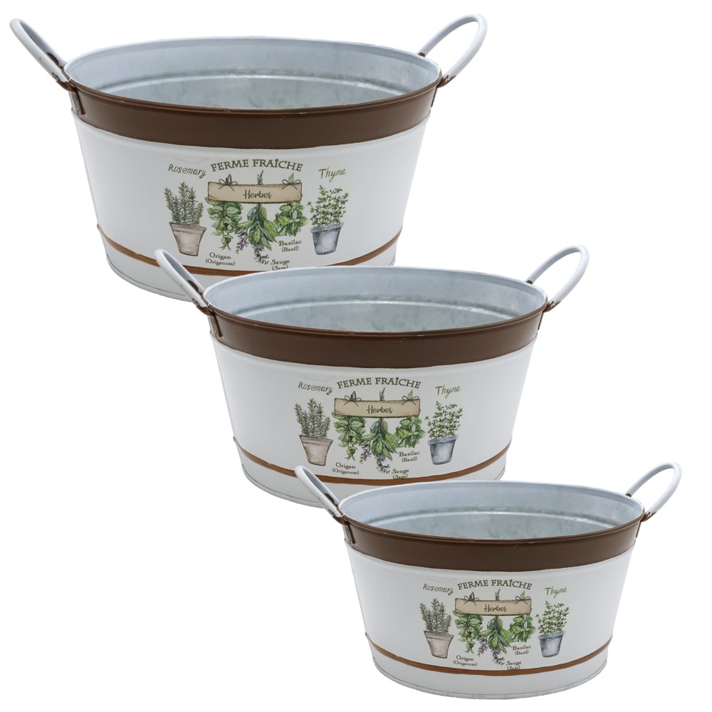 Vazo lulesh, set 3 copë, metalike, e bardhë/kafe, 22x12 cm; 25x13.5 cm; 28x15 cm