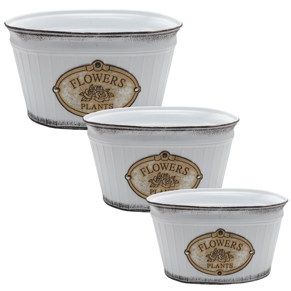 Vazo lulesh, set 3 copë, metalike, e bardhë/kafe, 24x18x15 cm; 28x21.5x16 cm; 21.5x24.5x17 cm