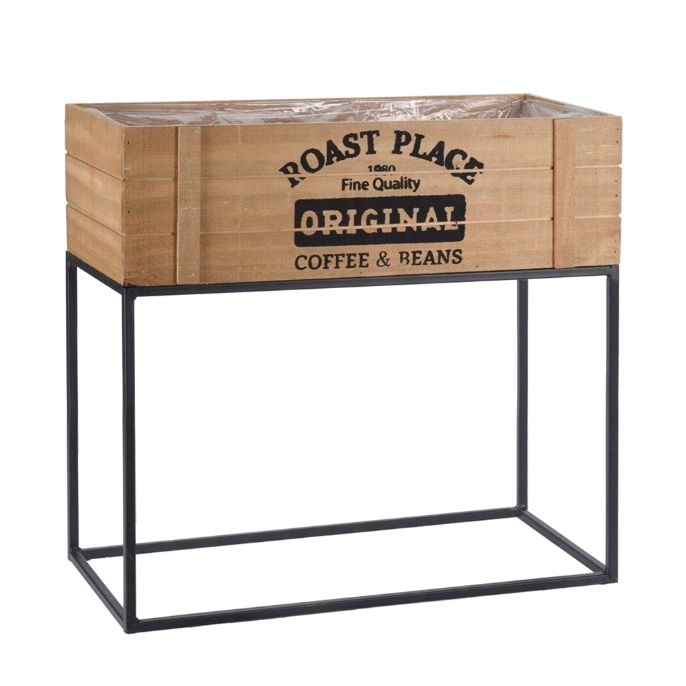 Flower standM, wooden/metal,brown/black, 44x44x18.5 cm