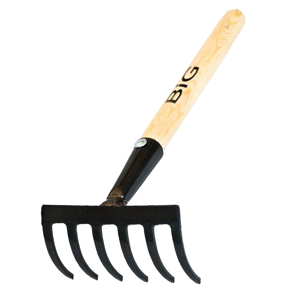 Gardening tool, Big, 11 x 33 cm, 6 teeth, metal head, wooden handle