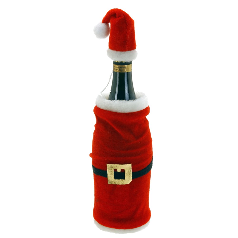 Po vlerësoni:Veshje për Shishe vere si Santa Claus, 100% poliester, e kuqe, 34x13x2.5 cm