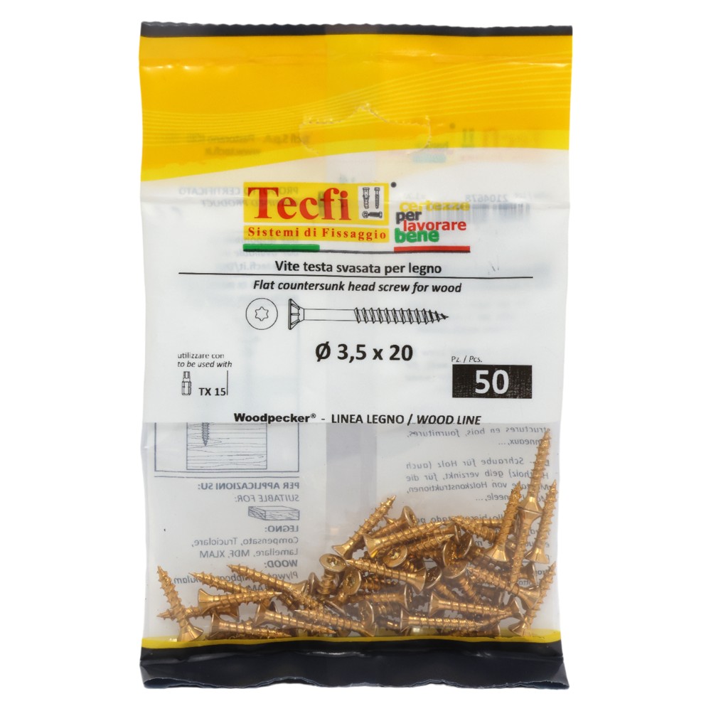 Po vlerësoni:Flat CSK head torx recess chipboard screw,yellow zp, Ø3,5x20mm, Bag 50