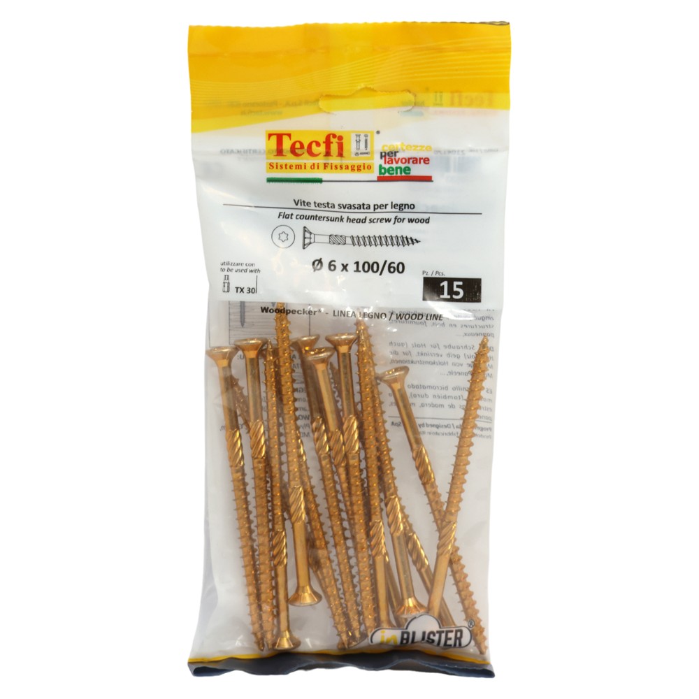 Vida druri koke trox e verdhe, Ø6x100/60mm , Bag 15