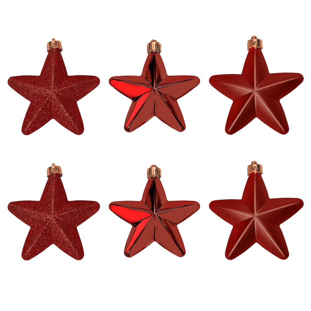 Po vlerësoni:Yje dekoruese, plastik, e kuqe, 2x7.5x7.5 cm, 6 copë