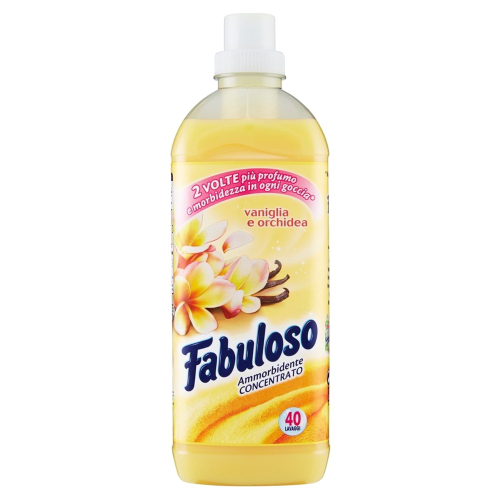 Zbutësi i koncentruar për rroba Fabuloso Vaniglia&Orchidea sjell një ndryshim të ndjeshëm në teksturën dhe aromën e rrobave tuaja. Formula e tij e koncentruar siguron një efekt të fuqishëm zbutës dhe freskues, gjithashtu një aromë të këndshme dhe të qëndrueshme.
