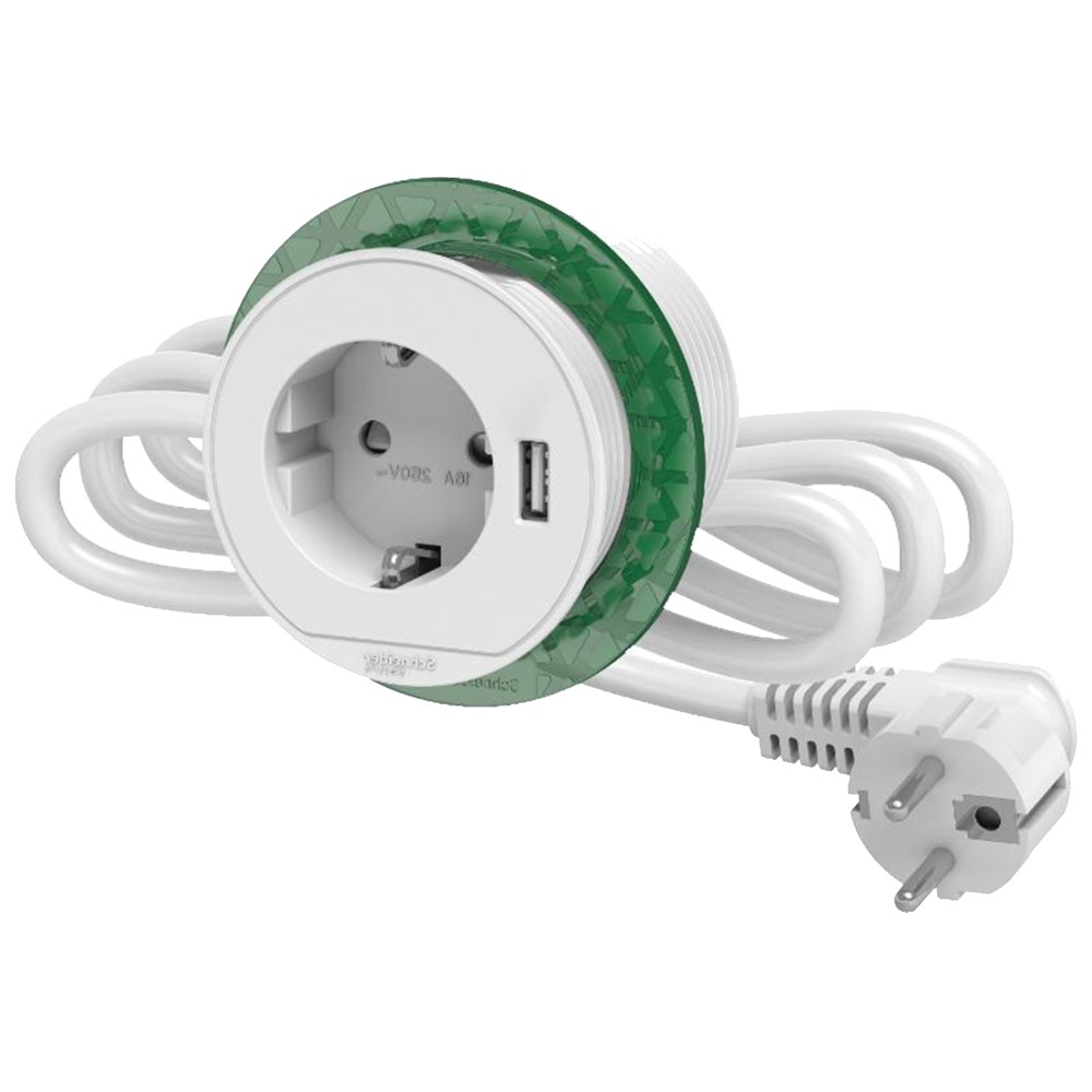 Zgjatues i bardhe me nje prize shuko per montim ne tavoline pune, 16A, 250 V + USB 5V,3.1A