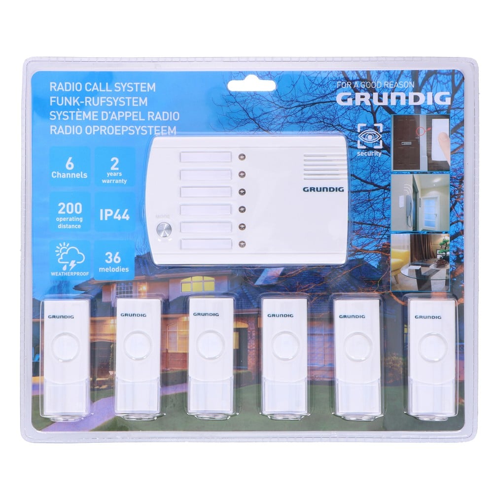 Zile wireless, Grundig, 6 kanale, 200 m, IP44, 36 melodi, 1xCR2032, 3xAA