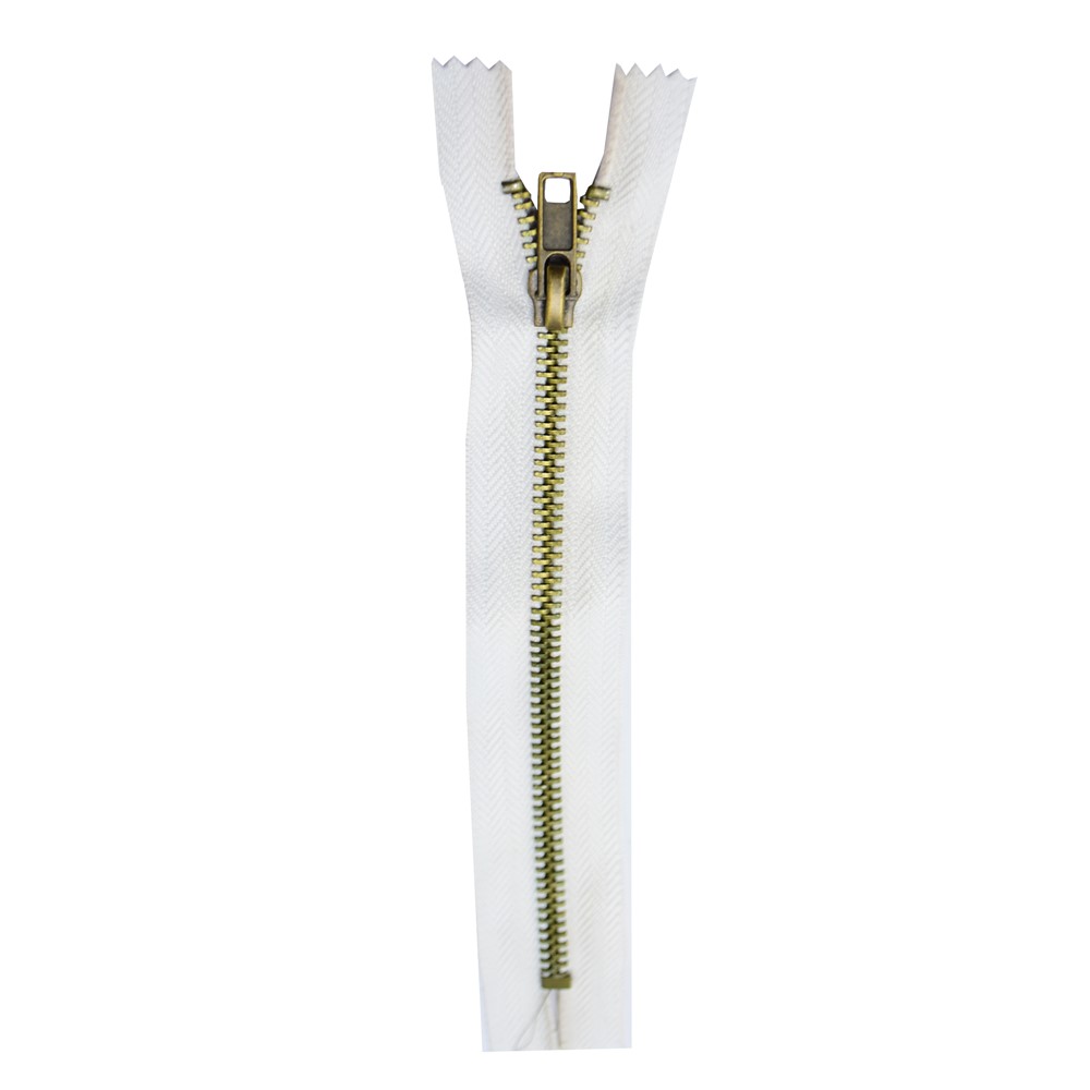 Zinxhir për veshje të ndryshme, prej materiali metalik dhe poliestre, me gjatësi 22 cm, në ngjyrë të bardhë. Përdoret për t'u qepur në rroba të ndryshme dhe është i përshtatshëm për t'u përdorur nga rrobaqepësit dhe stiluesit.
