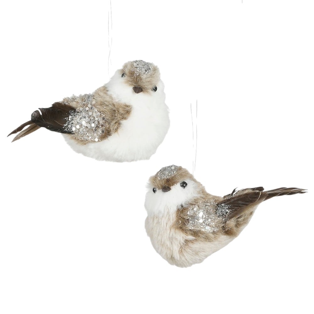 Po vlerësoni:Zog dekorues me varje, ngjyre gri dhe e bardhe me xixa, L6.5xW7xH12.5 cm